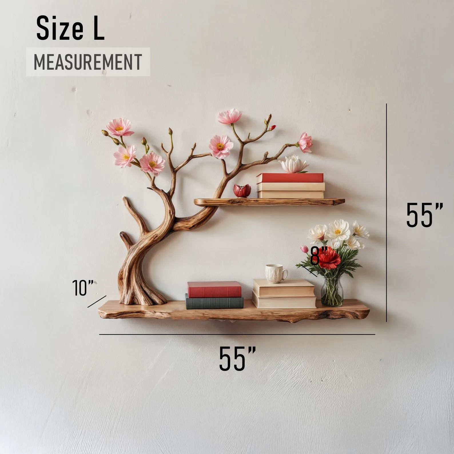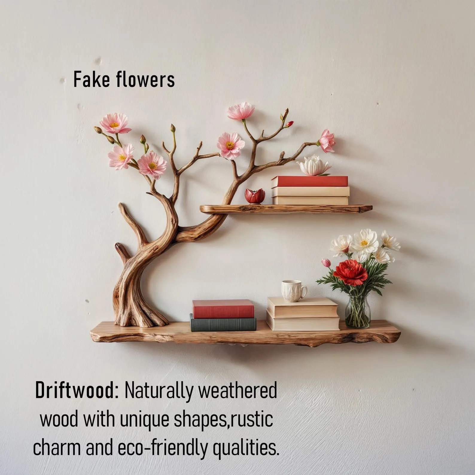 Handcrafted Driftwood Tree Wall Shelf Bookcase For Hallway Display