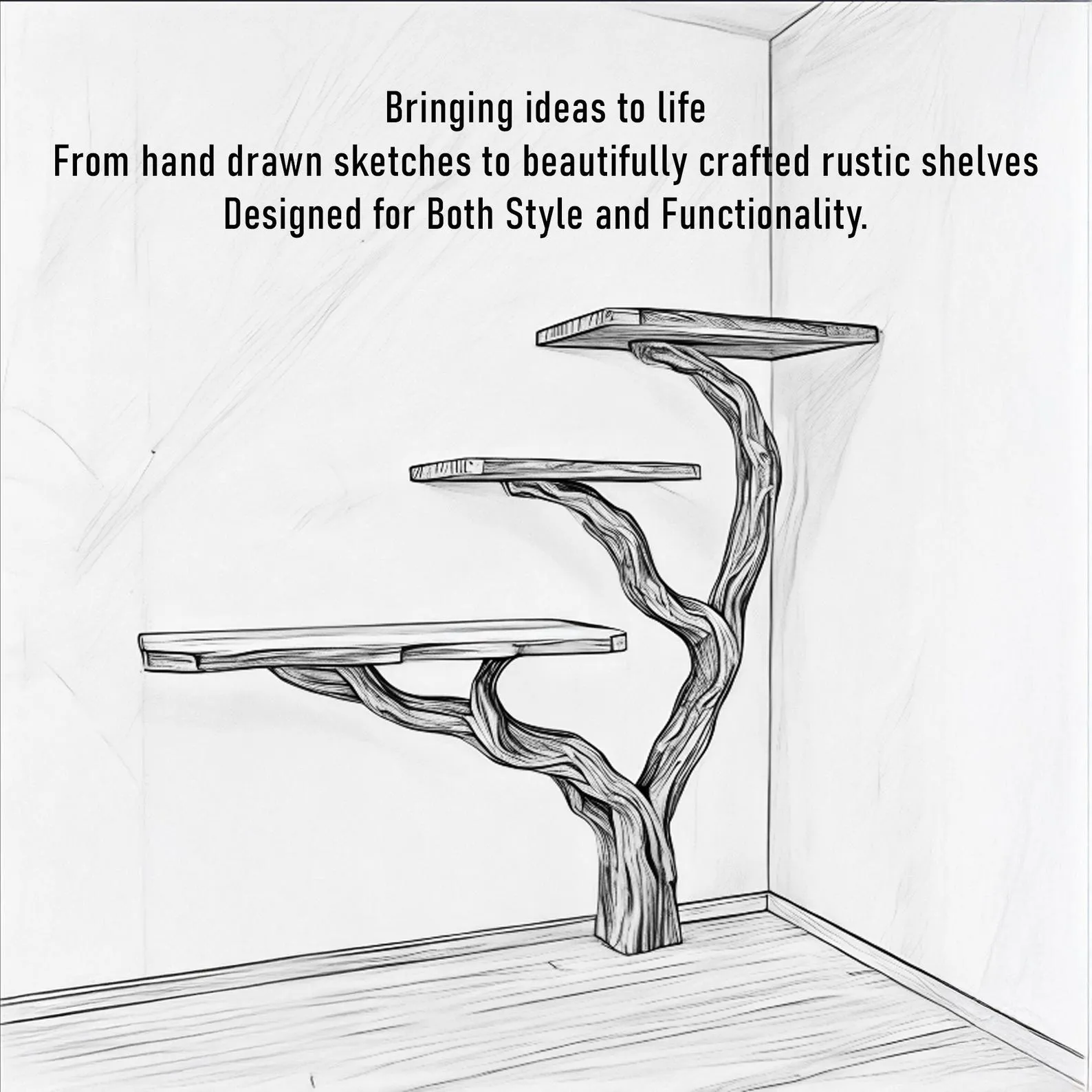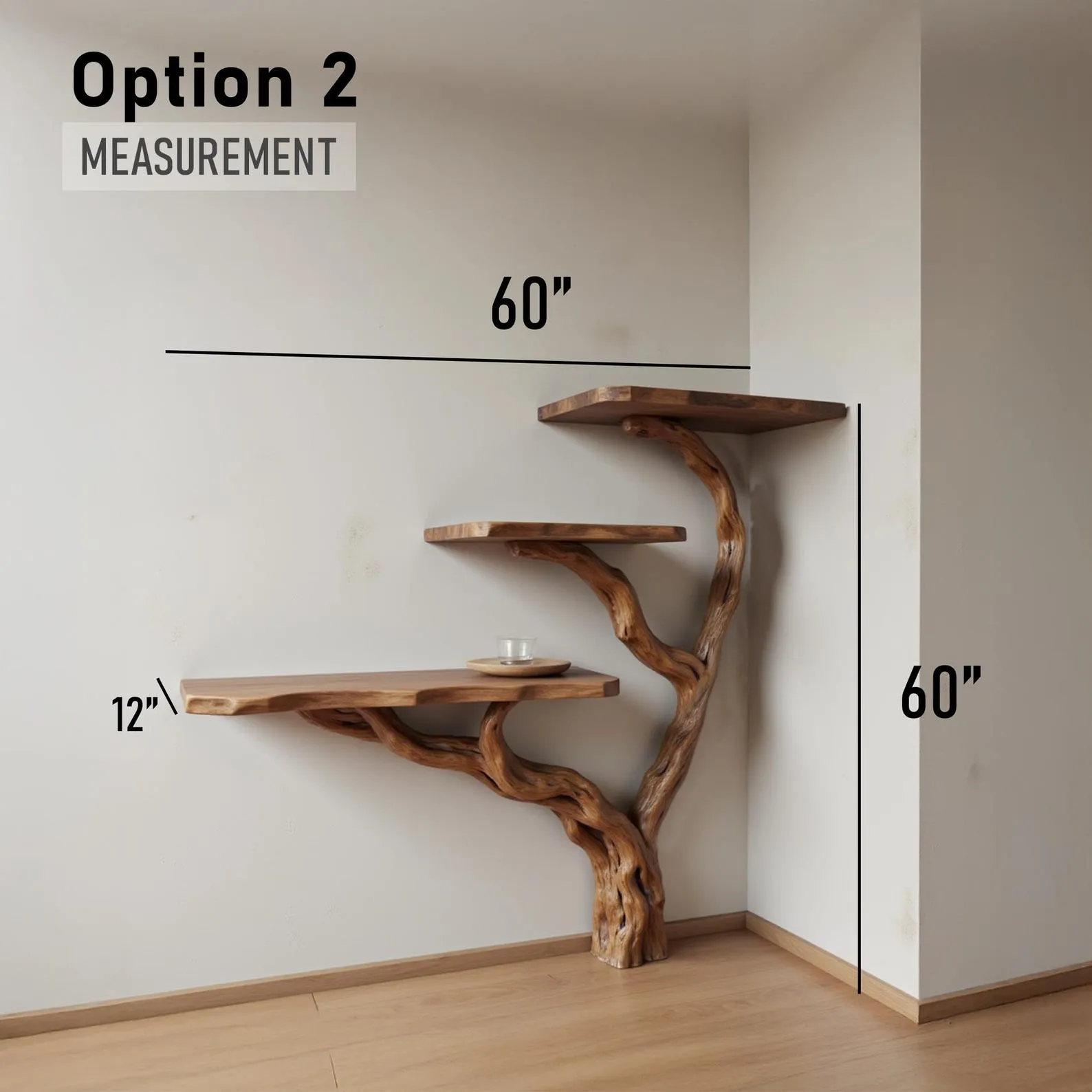 Rustic Driftwood Branch Console Desk With Floating Shelf Storage